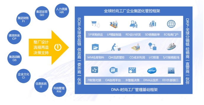 服装产业作为国民经济的支柱产业之一,是中国制造业由大变强、转型与提升的“显微镜”。当前,面对网络化、数字化、智能化的新一轮科技革命,服装产业的制造方式、消费方式以及运营模式都产生了重大变革,DNASOFT意利科技帮助服装企业解决生产制造过程复杂这一难题,着力打造服装行业生产供应链管理软件标杆产品。基于PDM、SCM、云工厂等系统大模块重构和SAAS轻量化部署,帮助消除信息孤岛、全面整合对接,其以研发、设计、制造为主线,实现对产品研发、计划、供应链、生产过程、产品质量追溯智能化管控。